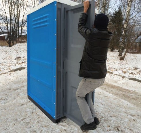 Daugelio plastikinių tualetų kabinų silpniausia vieta yra durų vyriai. Mūsų mobilių biotualetų durys tvirtinamos 2 metaliniais kaiščiais D=15mm per visą durų aukštį.